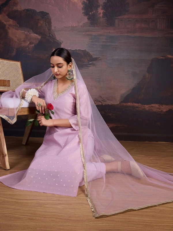Women's Embroidered Chanderi Silk Kurta with Pant & Dupatta Set